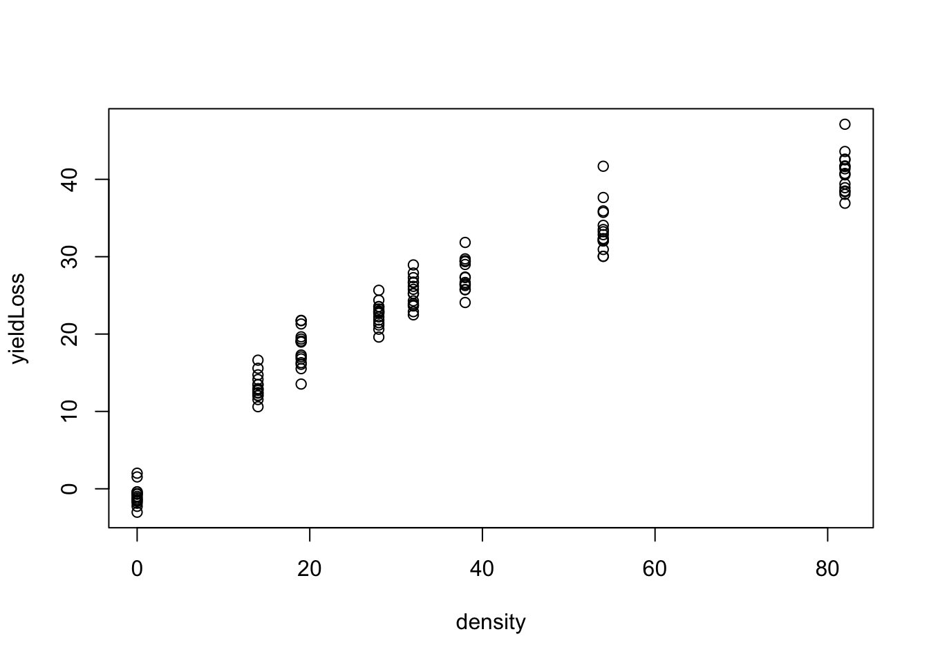 plot(yieldLoss ~ density, data = dataset)